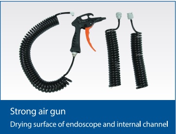 Trang bị sung hơi mạnh mẽ, giúp làm khô nhanh bề mặt ngoài và bên trong kênh ống soi, giúp hạn chế nghẹt kênh khí nước